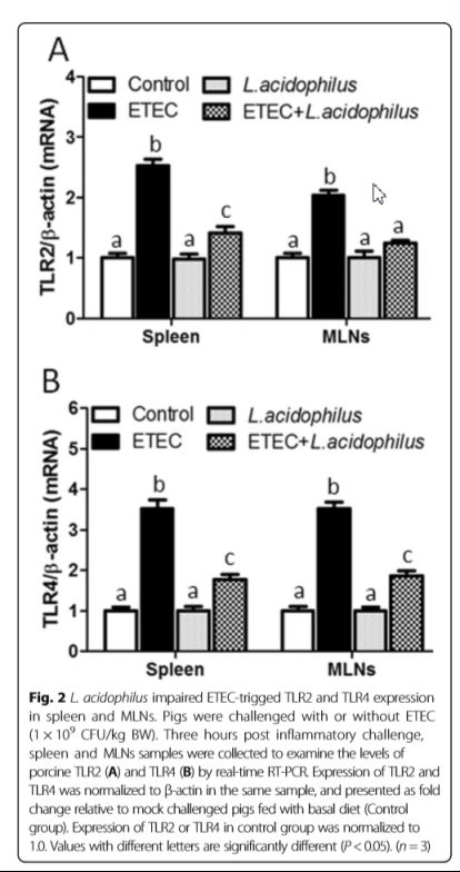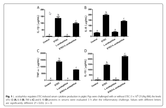 图3. 嗜酸乳杆菌对减缓仔猪对产肠毒大肠杆菌引起的炎性反应