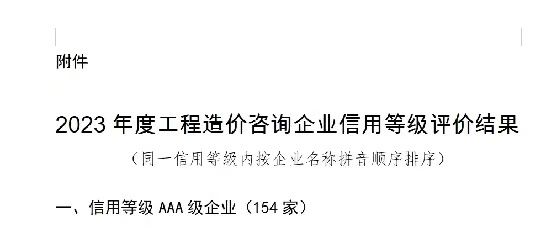 祝贺我公司荣获2023年度工程造价咨询企业信用等级AAA级企业